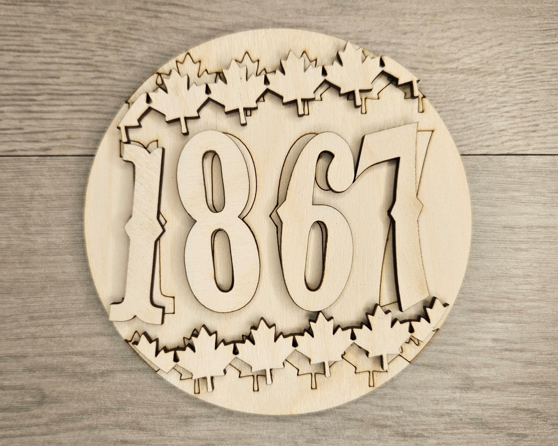 4 inch is cut on 1/8" birch, 10 inch & larger is cut on 1/4" maple