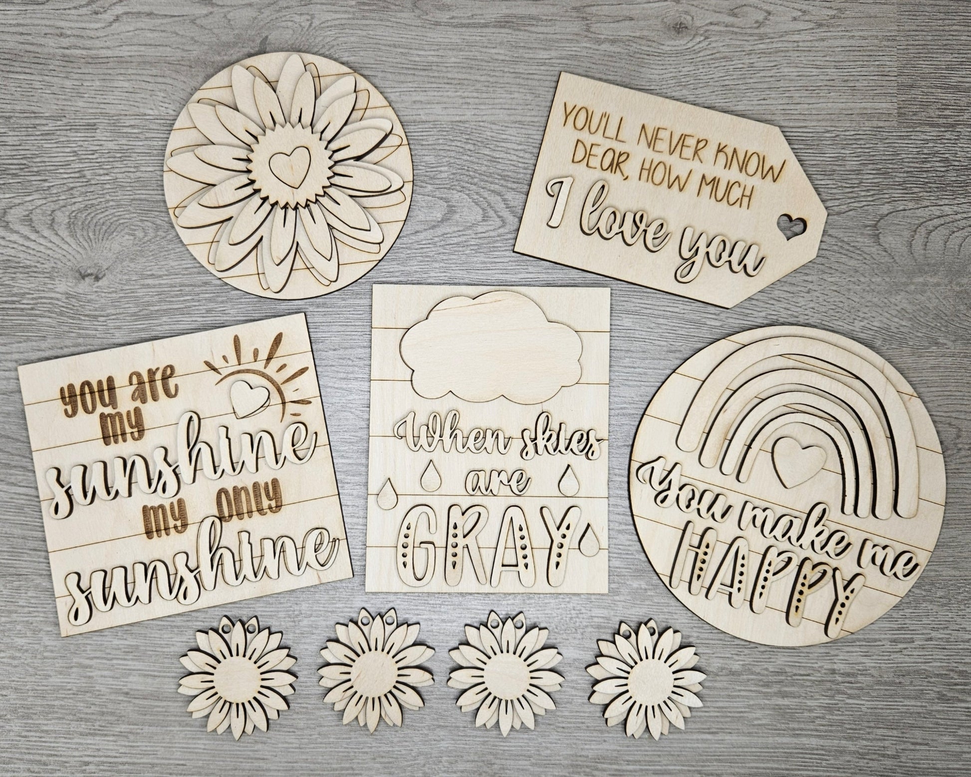 4 inch is cut on 1/8" birch, 10 inch & larger is cut on 1/4" maple