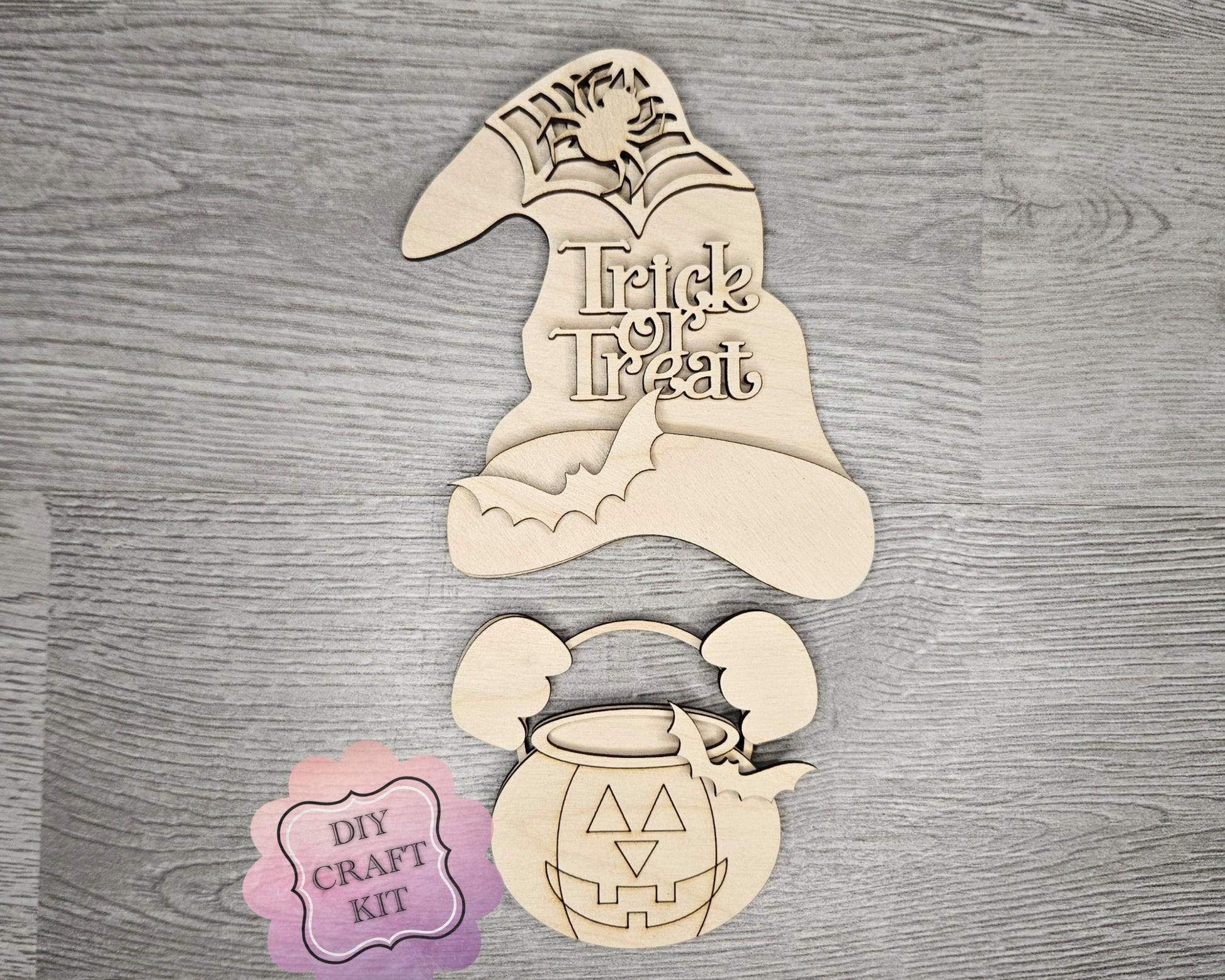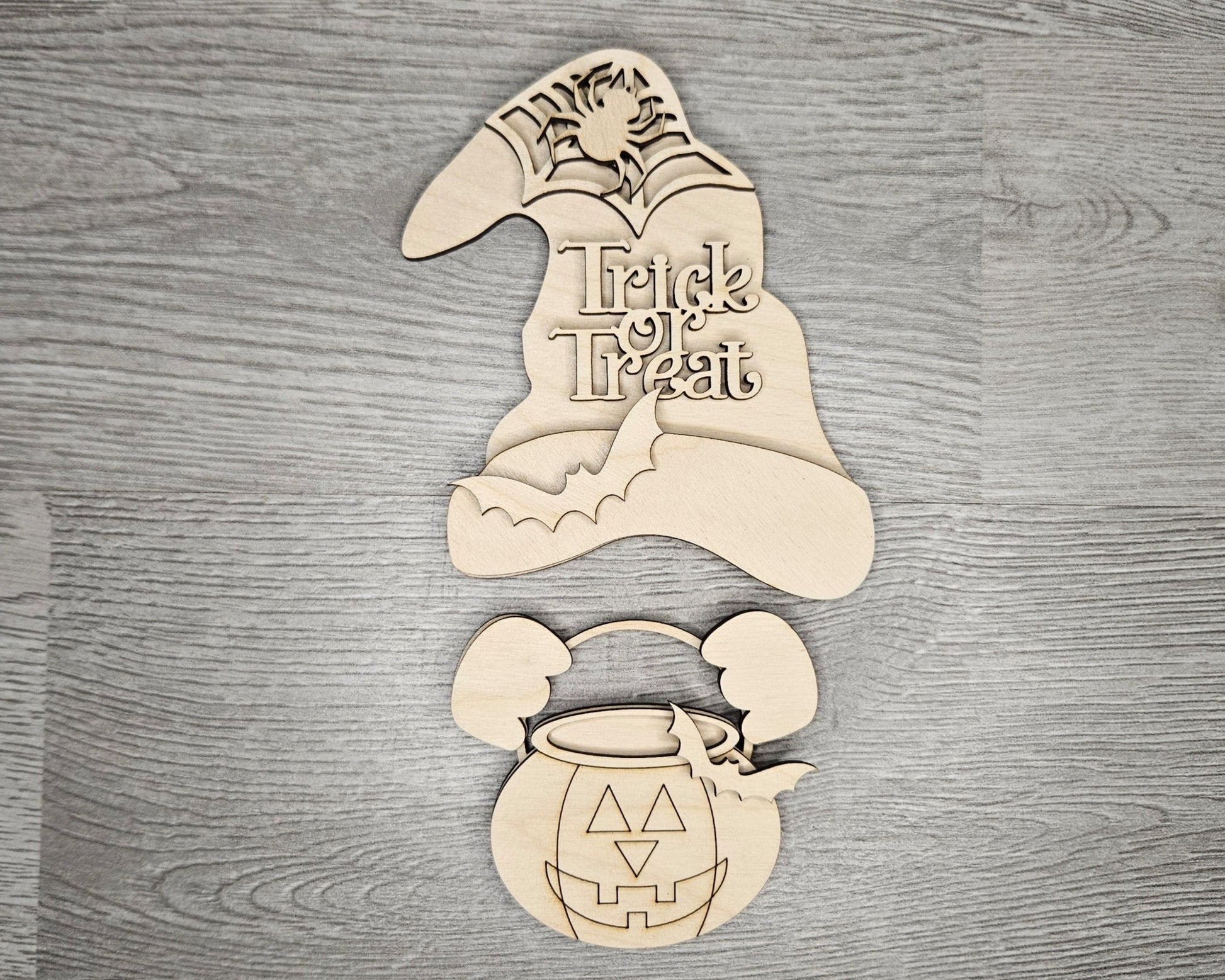 This is unfinished wood. Base kit is 1/4" thickness, while toppers are 1/8" thickness layered. Gnomes measures 8.3" tall for the boy, and girl measures 8.1" tall.