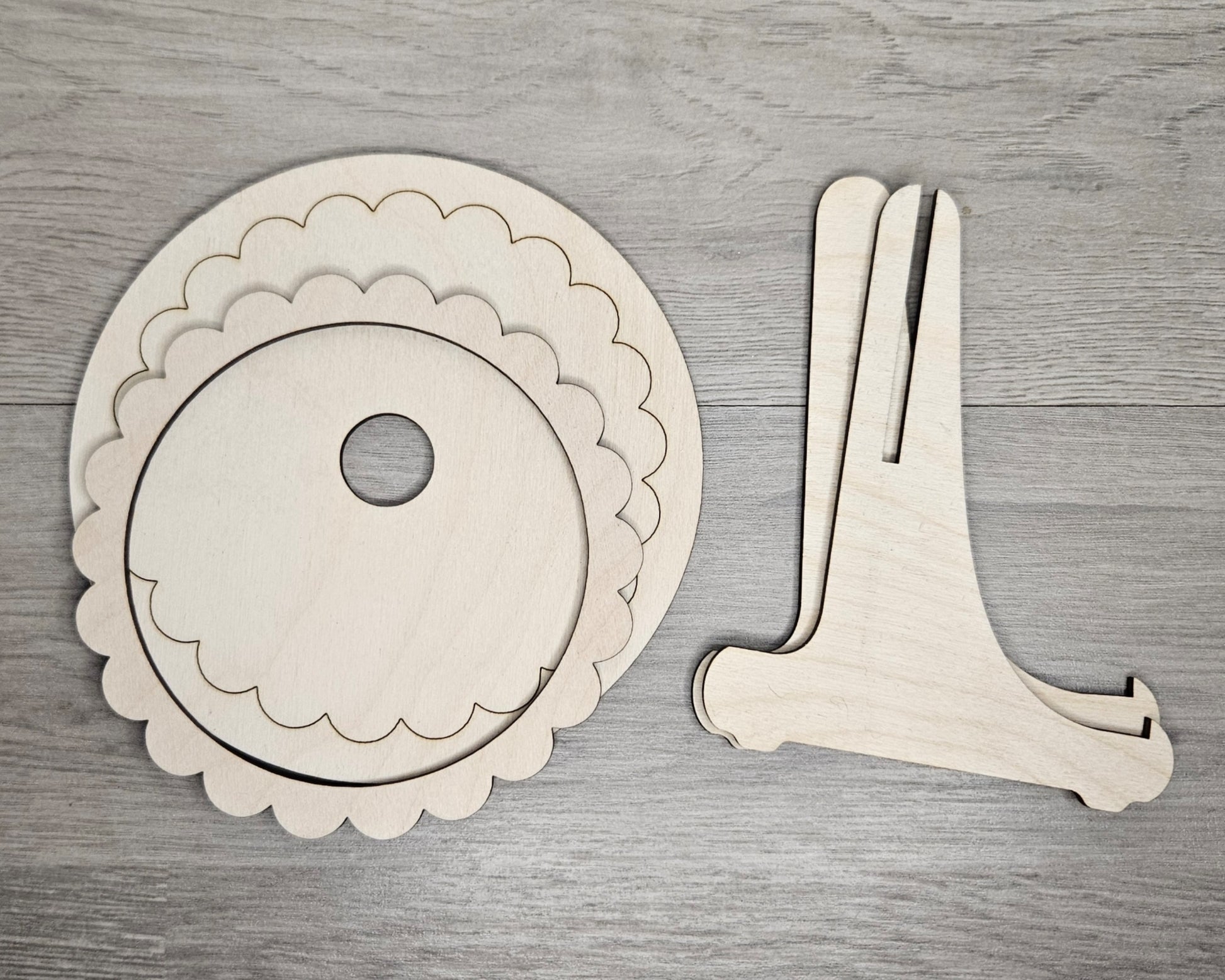 Measures 5.6 inches. Sizing measures from the longest part of the backer piece. Comes with our large size easel