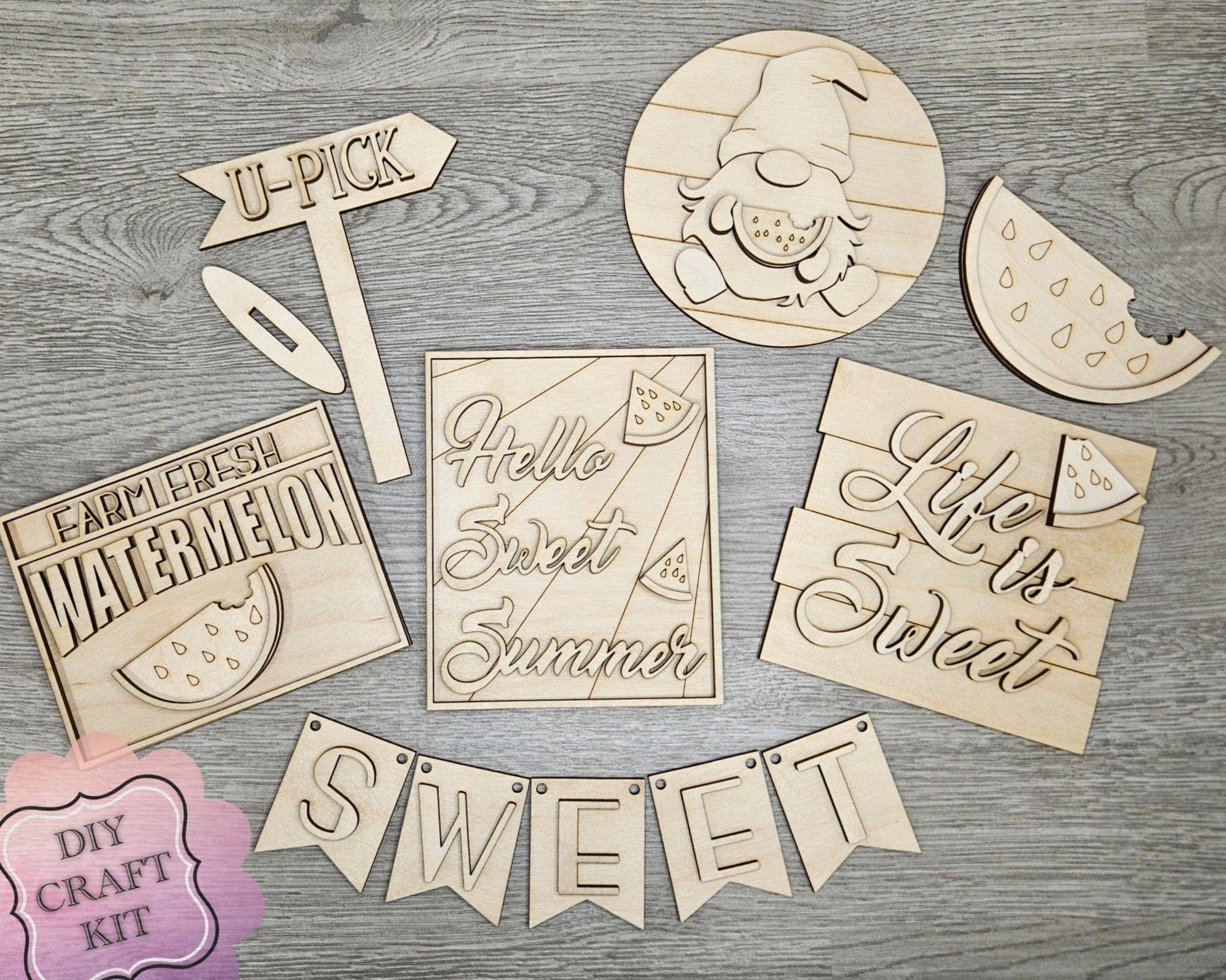 4 inch is cut on 1/8" birch, 10 inch & larger is cut on 1/4" maple